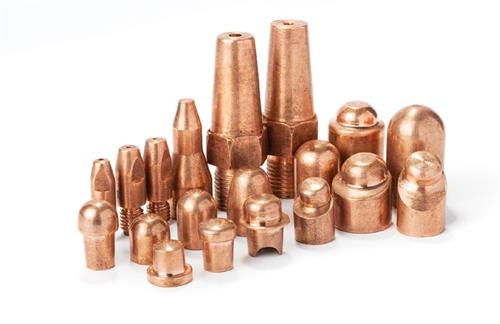 Spot Welding Electrode Tip Overview Introduction This product is made of a nanocomposite consists of copper alloy reinforced with aluminum oxide nanoparticles with the average size of 10 nm, which are uniformly distributed in the copper matrix. Aluminum oxide is produced through a process in which oxygen reacts with aluminum in the copper lattice in the solid state. This method, in comparison with other techniques, has the best particle size and distribution. Aluminum oxide is very hard, thermally stable and insoluble in copper. These particles not only increase the copper alloy strength but also have no significant effect on reducing the thermal and electrical conductivity of copper. The electrode tips are produced in different male or female types by cold forming process or in some cases by the machining process. Application Assembly of the car body (robotic and manual) Home appliances Aerospace industries (welding) Advantage of Using Nanotechnology Addition of aluminum oxide nanoparticles increases the hardness and tensile properties of the copper alloy. These features are created through the pinning of dislocations by aluminum oxide nanoparticles, which consequently postpone the crystallization process. Certificates and Standards NanoScale Certification AddToCartModal ×
